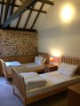 A semi detached brick and flint barn conversion with exposed wooden beams throughout. One double, one twin bedroom and one family room with 1 double and 2 single beds. Lounge with colour TV and dining area. Fully equipped kitchen. Shower/WC. Central heating throughout.